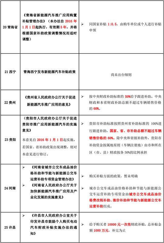 目前已经有40个省市出台了地方补贴政策,具体包括:
