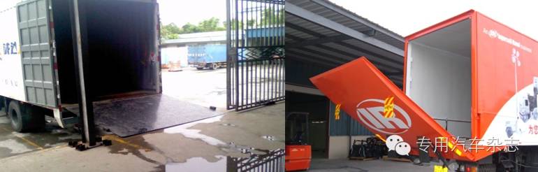 折叠式尾板:适用于冷藏车那种不需要液压尾板、直接对接卸货平台,这样就省去了操作空间,也更加方便。